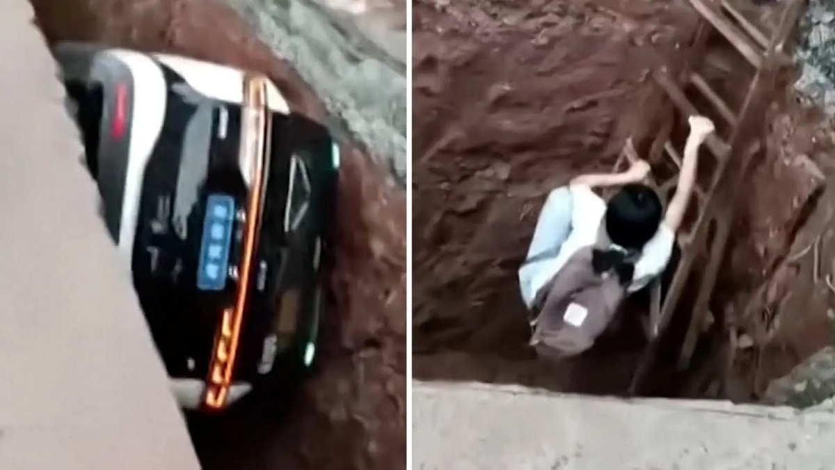 В Китае роботакси с пассажиркой упало в строительную яму