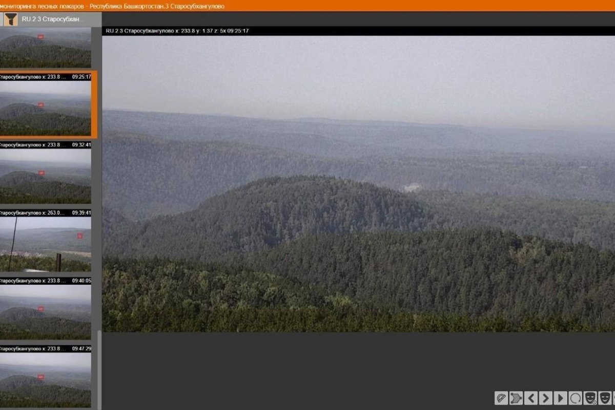 В Республике Башкортостан реализуется система мониторинга лесных пожаров, включающая 25 комплексов видеомониторинга, установленных в 10 районах: Абзелиловском, Баймакском, Белорецком, Благовещенском, Бурзянском, Зианчуринском, Зилаирском, Кугарчинском, Учалинском и Хайбуллинском. Кроме того, камеры функционируют в ключевых резервных зонах. С 2021 года в рамках проекта «Лесохранитель» внедрены интеллектуальные камеры, оснащенные нейросетевыми алгоритмами для анализа данных. За период с момента запуска системы до настоящего времени было зафиксировано 78 случаев возгораний в лесных массивах и на прилегающих территориях, что свидетельствует о высокой эффективности технологии в выявлении и локализации начальных стадий пожаров. По данным Главы Башкортостана Радия Хабирова, камеры видеомониторинга обладают дальностью обнаружения дыма до 25 километров и точностью определения координат потенциального пожара до 200 метров, что позволяет оперативно передавать информацию диспетчерским службам. Это
