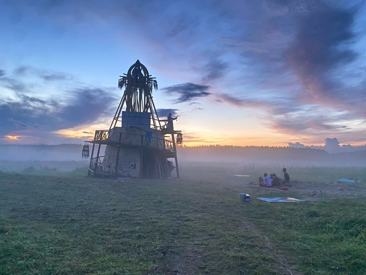 Он дал его нам, когда только-только вернулся с фестиваля «Бессонница», где спроектировал и построил с командой единомышленников Виману. И вот что он нам рассказал: «Я второй год делаю на "Бессоннице" инклюзивный лагерь у реки. Набережная, пандусы для колясок, специальный туалет, общее пространство. Питерский благотворительный фонд "Перспективы" привозит туда своих подопечных, чтобы у ребят были новые впечатления. Это здорово способствует их социализации. И подопечные эти — художники и музыканты. Они демонстрируют на фестивале своё творчество. И для этого, и также для привлечения внимания к проблеме инклюзии, был нужен арт-объект! Так сказать «творческое поле». В первый раз это была небольшая сцена. Но она не сильно привлекала людей. А в этот раз мы решили сделать нечто посерьёзней. И так родилась Вимана. В ней был и лекционный зал с подходящей акустикой, и обзорная площадка для всех людей, и в том числе для колясочников! Для этого был сооружен пандус, ведущий на высоту 4,5 метра.
