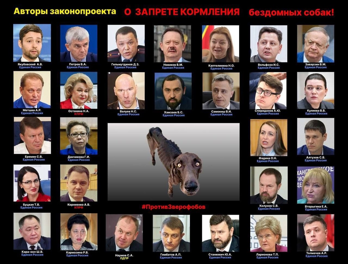 ⛔Госдума заняла открытую антипрезидентскую и антиконституционную позицию и переходит к формированию жестокого живодерского общества, в котором будут приветствоваться доведение до гибели голодом и жаждой животных, выброшенных нелюдями на улицы, где добрым людям официально запретят спасать опекаемых собачек от рук смертельного отлова, а доносы и репрессии в отношении граждан, помогающих бездомным животным и поддерживающих гуманный курс, заданный Президентом В.В. Путиным и Конституцией РФ, станут нормой!