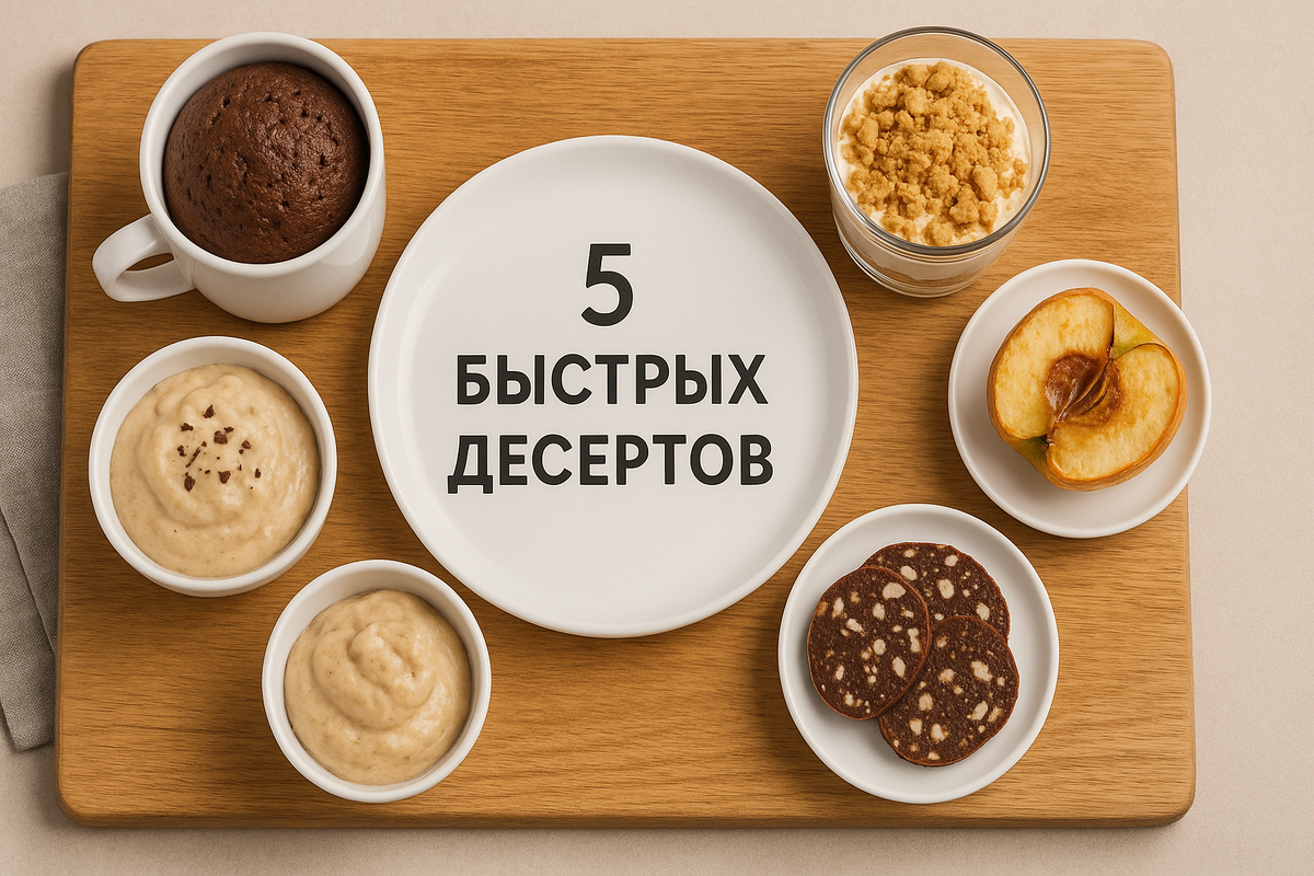 Знакомый сюжет: вечер, сериал, в голове — «хочу сладкое», в ногах — «лежу». Магазин далеко, силы — на минималках. Я достала «обычный набор выживальщика»: печенье, йогурт, бананы, какао, яблоки, овсянку — и собрала 5 быстрых десертов без сложностей. Время — от 5 до 12 минут, посуда — минимум, вкус — «а что, так можно было?».