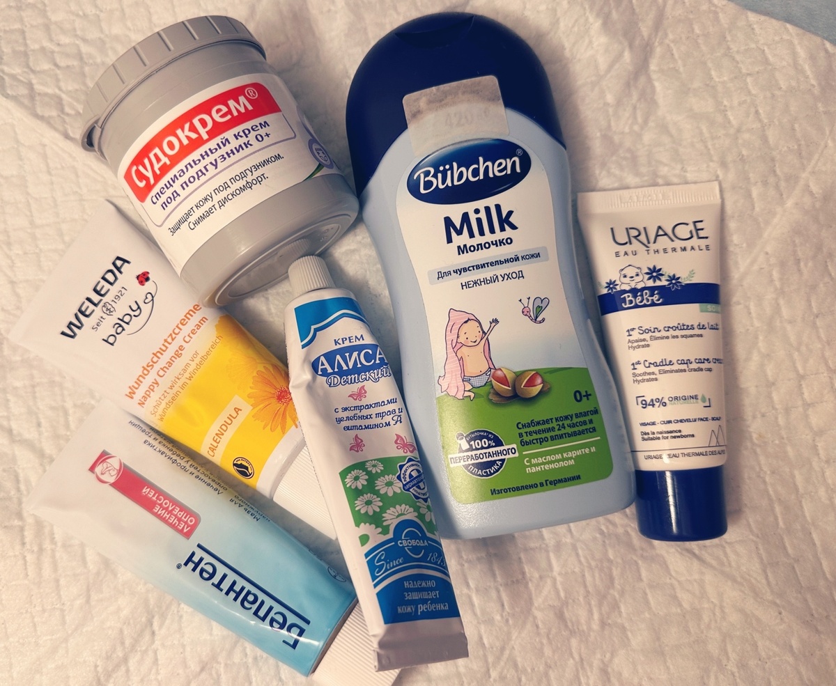 Судокрем Крем чудодейственный, без преувеличения. Стоит опрелости нарисоваться на горизонте - этот красавчик просто берет, и без лишних слов и пафоса делает свою работу. Неспроста такая суровая упаковка и отсутствие маркетинга, построенного на “утютюшках-улюлюшках”. Он просто берет и делает. По дурости забыла, что у ребенка над попой есть впадинка и что ее надо обрабатывать, да и за ушами тоже. Опрелости были чуть ли не до кровотечения (к моему стыду). Этот крем справился за день, без преувеличения. Еще он очень хорош от прыщиков. Что в составе: цинк, антисептики, противогрибковые компоненты, а также ланолин и парафиновые воски. Детский крем “Алиса” от компании “Свобода” Когда я вернулась из роддома, то кроме Судокрема и остальных кремов с цинком у меня ничего не было. Кожа младенца была в чудовищных шелушениях, поскольку ребенок переношенный. Требовалось увлажнение и смягчение шелушек. Муж принес из аптеки крем, которым некогда меня мазала мама. Этот красавчик за 100 рублей навсегда о