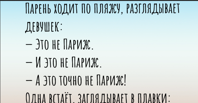 1. Вчера понял, что работа спасателем на пляже — не моё. Даже не смог разобраться, кому махал тот человек в воде — мне или кому-то ещё…
