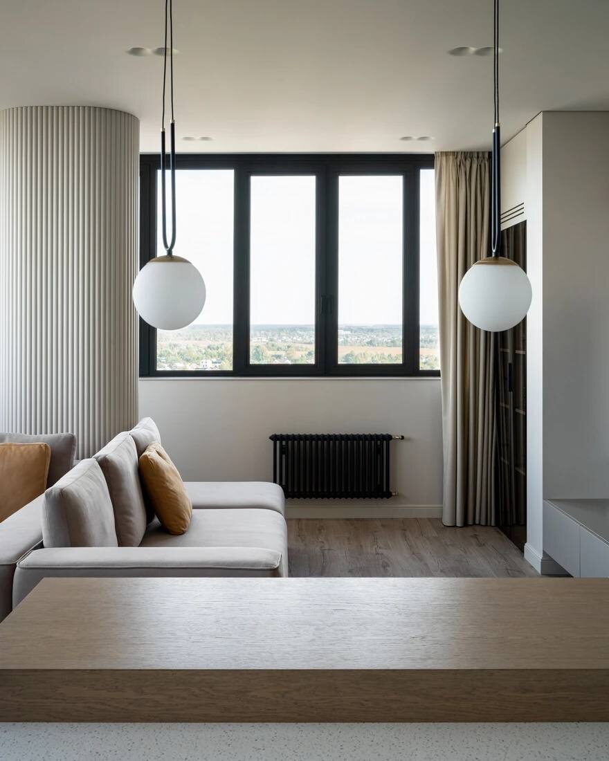 Утончённая гостиная с архитектурными акцентами | Дизайн Анны Лисимовой Иногда достаточно одной детали, чтобы интерьер заиграл по-новому. В этом проекте таким акцентом стала овальная колонна, декорированная гибкими 3D-панелями Orac. Получилось свежо, стильно и с характером 🤍 #гостиная