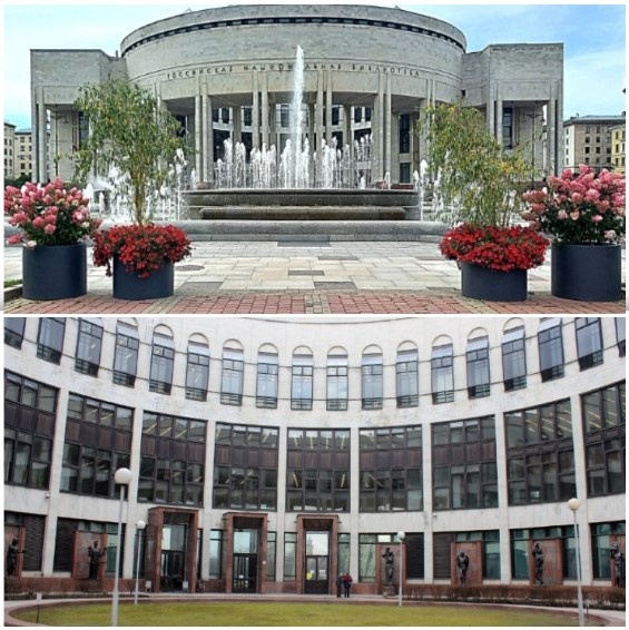 Здесь же, напротив парка и одноименного метро, расположено новое здание Российской национальной библиотеки. Перед фасадом фундаментального здания, установлена целая серия фонтанов, которые в вечернее время работают в свето-динамическом режиме.