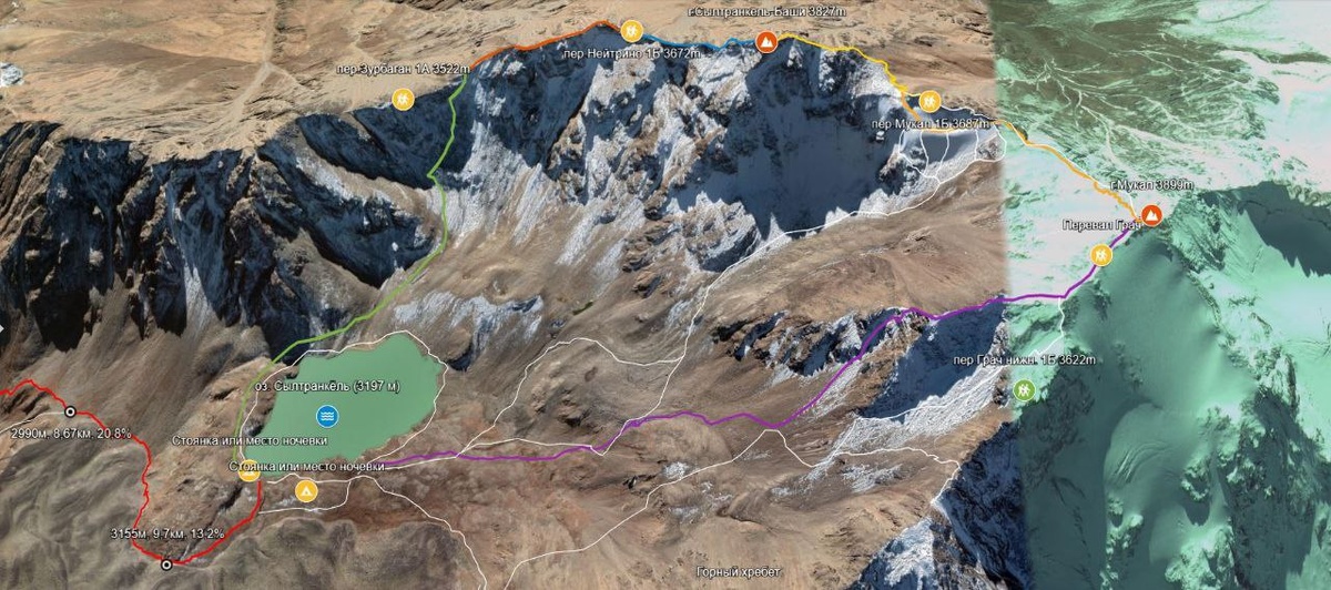 г.Сылтранкельбаши (3 827 м.н.у.м.) — г.Мукал (3 899 м.н.у.м.)