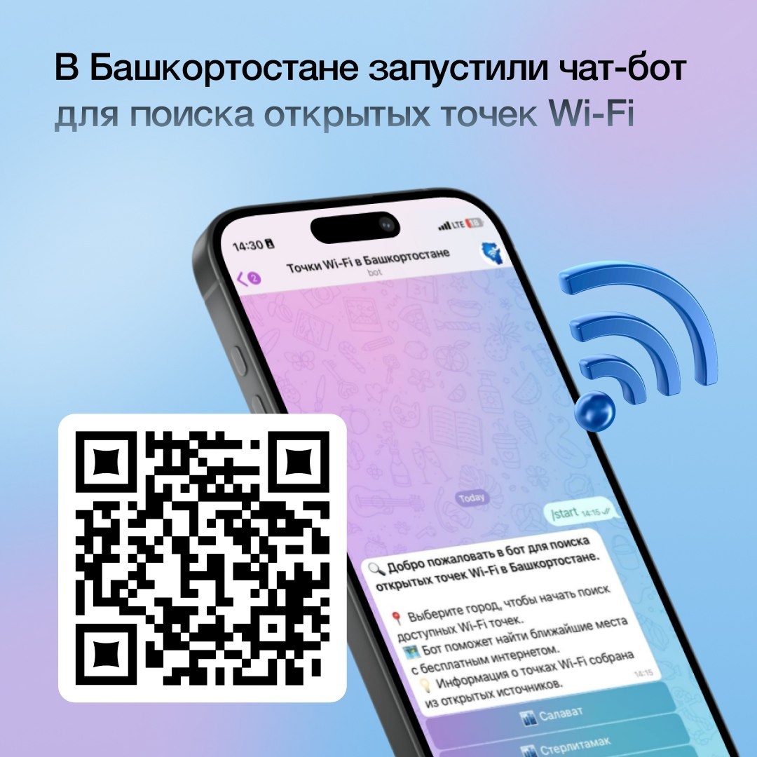 Если вы попали в зону ограничения мобильного интернета, воспользуйтесь открытыми точками Wi-Fi. Для их поиска в Башкортостане запустили чат-бот: vk.cc/cOtPtl. Подробная инструкция к боту в карточках. Источник https://uchaly102.ru/?p=95327