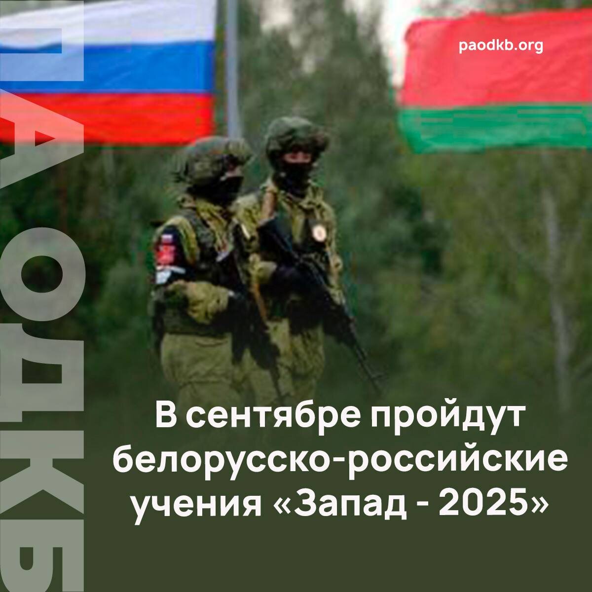 🇧🇾 С 12 по 16 сентября на территории Беларуси пройдут совместные стратегические учения вооружённых сил Беларуси и России «Запад-2025». Об этом сообщил начальник департамента международного военного сотрудничества Валерий Ревенко. 🇧🇾 Главная цель учений — проверка возможностей двух стран по обеспечению военной безопасности Союзного государства и готовности к отражению возможной агрессии. В целях прозрачности Беларусь приглашает иностранных наблюдателей. ✔️ Кроме того, в начале сентября в Беларуси пройдут учения Организации Договора о коллективной безопасности. ✅ Парламентарии ОДКБ примут участие в таких учениях, как «Взаимодействие-2025» с Коллективными силами оперативного реагирования, «Поиск-2025» с разведывательными подразделениями и «Эшелон-2025» с силами материально-технического обеспечения. Подробно ➡️ paodkb.org Сайт | VK | Fb | X | Instagram | dzen