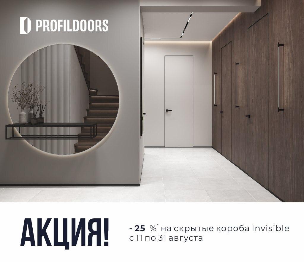 Скидка -25% на скрытые короба Invisible Скидка распространяется на модели: • Invisible • Invisible Reverse • Invisible Infinity • Invisible Infinity Reverse Не действует на: • Дверной погонаж • Фурнитуру • Системы открывания • Прочие комплектующие Акция проходит с 11 по 31 августа 2025 года Скидка не суммируется с другими акциями. Для получения дополнительной информации посетите любой магазин ProfilDoors. Организатор акции оставляет за собой право изменить условия или отменить ее без объяснения причин. https://www.profildoors.design/