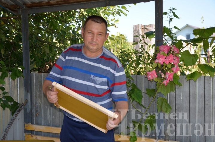 Пчелы Мунира и Миляуши Сальмановых собирают мед с цветов на своих лугах Яшавче. В этом году они собираются качать мед в третий раз. Хотя дожди мешали, но меда много - Июньские дожди немного замедлили работу пчел, но, как только установилась теплая погода, они наверстали упущенное, - сказал Мунир Галиагзамович. - Новый мед мы попробовали уже в начале июля. У нас богатые луга, и пчелы собрали много цветочного нектара. А цветочный мед, как известно, самый ароматный и вкусный. Десятилетний опыт К этому занятию Сальмановы приступили десять лет назад. Работу начинали с одной семьи пчел. Сейчас на их пасеке выстроено около десятка ульев. - Первых пчел я привез из села Аккиреево, - вспомнил опытный пчеловод. - Это кропотливый труд, требующий терпения и заботы. Нас многому научил сосед, Нагимулла Шайдуллин. Сначала брали инвентарь у него, потом постепенно обзавелись своим. - Мунир, что заставило вас взяться за это занятие? - интересовалась я. - Мы любим мед, это, наверное, первая причина, - улы