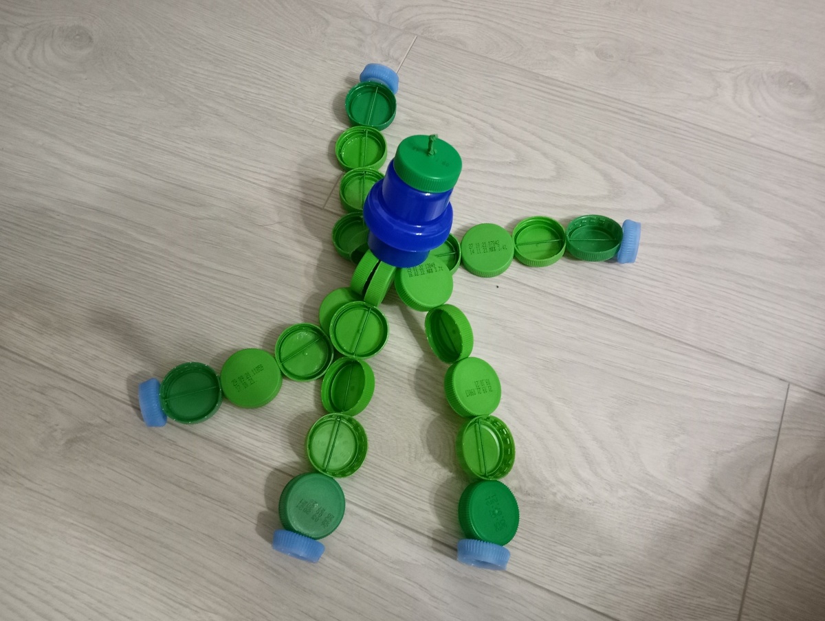 Продолжаю публиковать поделки своими руками для детей и их родителей из пластиковых крышек. Сегодня будет осьминог из пяти «ног». Этапы сборки осьминога смотрите в фотогалерее. Шляпная резинка придала игрушке динамичности. Голову (туловище) осьминога сделал из крышки от геля для стирки. Немного добавил разноцветных крышек, чтобы было веселее. С учётом сделанной ранее гусеницы получился зоопарк. Подписывайтесь, впереди новые проекты и поделки.