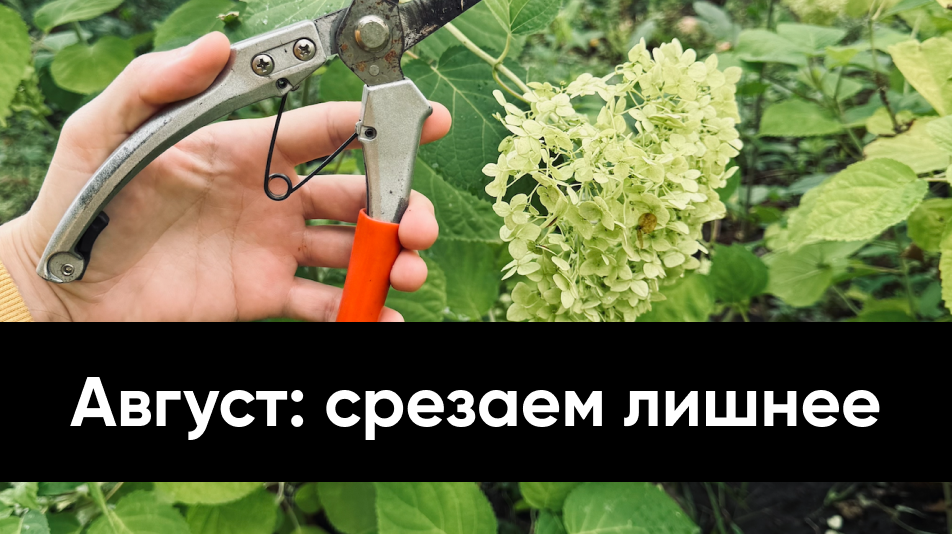 К августу рост замедляется, ткани "дозревают", и растение распределяет питание в пользу древесины и закладки цветочных оснований. У метельчатой и древовидной гортензии бутоны будущего сезона формируются на побегах текущего года, поэтому сейчас нельзя резать в каркас - убираем только то, что тянет соки: отцветшие метёлки, тонкую зелёную поросль, слабые внутрь куста побеги.