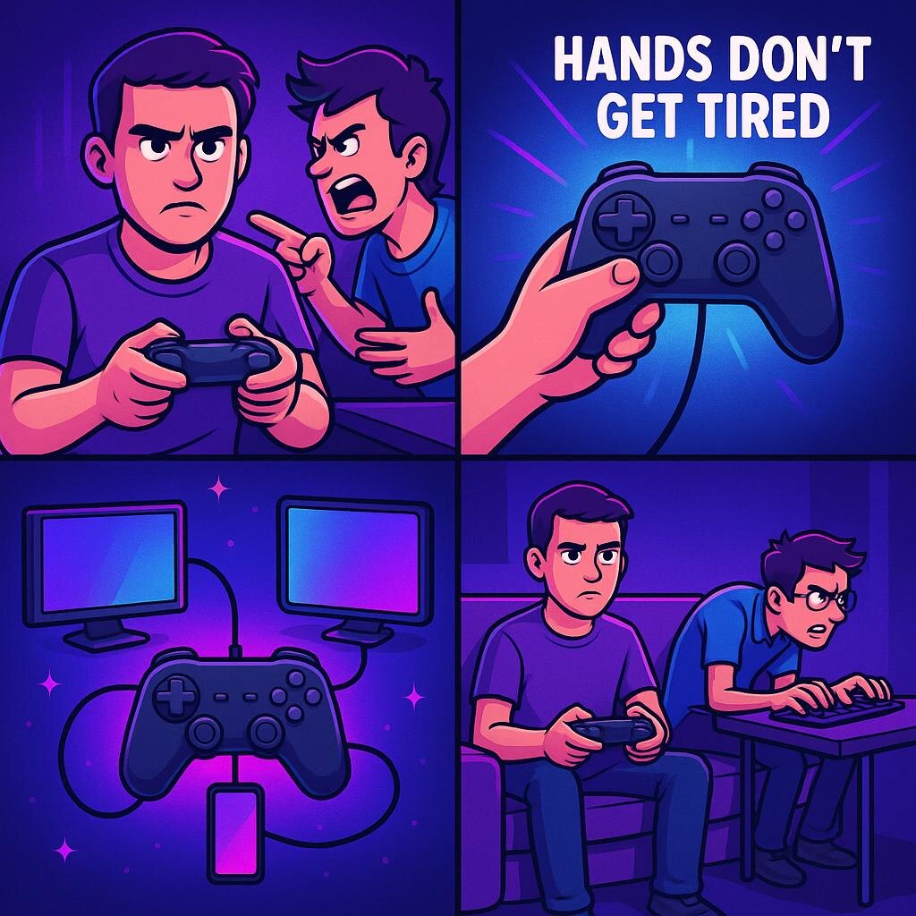 🎮 Топ странных причин, почему люди не любят геймпады Иногда читаешь комментарии — и понимаешь, что люди просто не пробовали 😅 1️⃣ «Я на ПК, геймпад — для консоли» На самом деле геймпад легко подключается и к ПК, и даже к телефону. 2️⃣ «Надо привыкать» Верно, но пару дней — и уже не хочется возвращаться. 3️⃣ «В шутерах лучше клава» Всё зависит от привычки. Многие в шутерах чувствуют себя комфортнее именно с геймпадом. 4️⃣ «Не тот уровень погружения» А виброотдача, плавное управление и удобная посадка в руках как раз помогают погрузиться. 5️⃣ «Он садится в самый важный момент» А у клавы и мыши провода не рвутся? 😏 А ещё есть проводные геймпады — проблема решена. 💬 А вы пробовали играть с геймпада? 🕹 У нас есть лёгкие, беспроводные модели для ПК, PS, Xbox, ТВ и телефона. WB | OZON | MAGIC GHOST PlayRoom — Играй и общайся | наши соц.сети