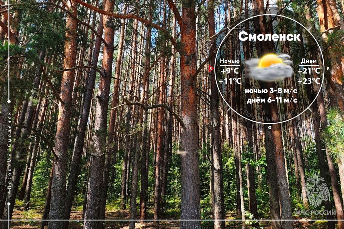в Смоленске: ночью +9°С…+11°С, днём +21°С…+23°С.