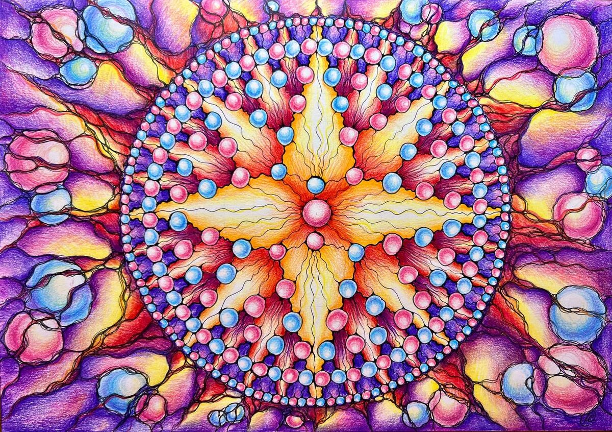 В последнее время тема рода очень актуальна для меня. Весной начала собирать по крупицам информацию о своих предках и составлять генеалогическое древо нашей семьи. Поэтому с огромным воодушевлением приступила к алгоритму «Звезда Рода». До этого я никогда раньше не рисовала свой род, поэтому было интересно и одновременно немного волнительно знакомиться со своими далёкими предками через нейрографику. Рисовала тему отношений. Очень хотелось всех их подружить между собой, поблагодарить за всё и послать им мою любовь. Ведь благодаря им я стала такой, получила от них это тело, внешность, здоровье, таланты и способности. Людмила, очень вам благодарна за этот глубокий вебинар!💐💐💐Столько нового узнала для себя и столько инсайтов получила, пока рисовала. Теперь ещё хочу свои будущие поколения нарисовать💫