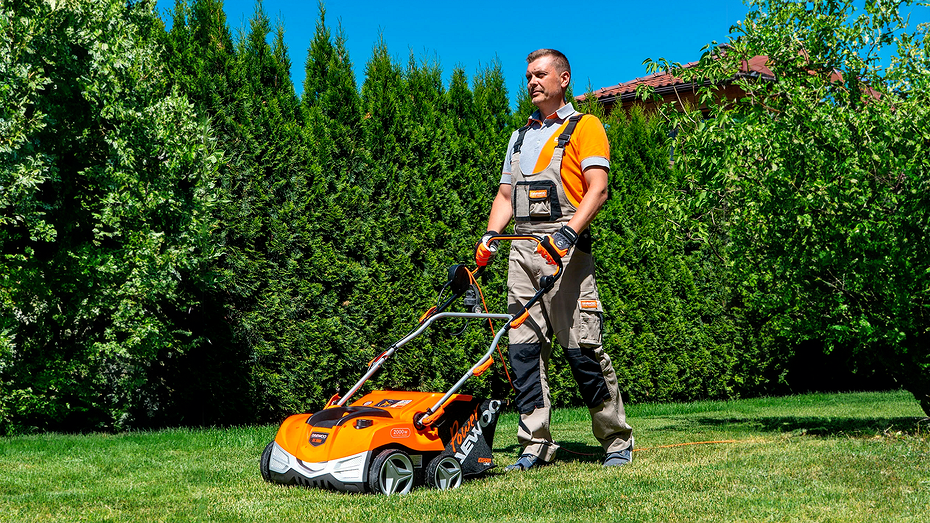 Бензиновые модели сейчас используются реже, особенно в загородных поселках с высокой плотностью заселения. Там не принято шуметь и «пахнуть» — то, чего не отнять у техники с ДВС. Единственное преимущество бензиновых исполнений — повышенная мощность, которая будет полезна для глубокой скарификации.