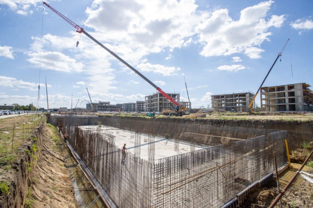 В первую очередь появится детсад на 300 мест с ясельными группами, спорт- и хореографическими залами. Уже готов фундамент, ведется возведение стен.