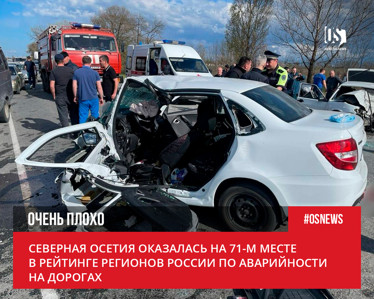 Северная Осетия расположилась на 71 месте в рейтинге. По данным экспертов, за полгода в республике фиксировалось 131 ДТП с пострадавшими на каждые 100 тысяч автомобилей, показатель вырос на 0,5%. На каждые 100 тысяч жителей приходилось 86,6 пострадавших в ДТП. Среди регионов СКФО Осетия показывает один из худших результатов, ниже только Карачаево-Черкесия, расположившаяся на 76 строчке.