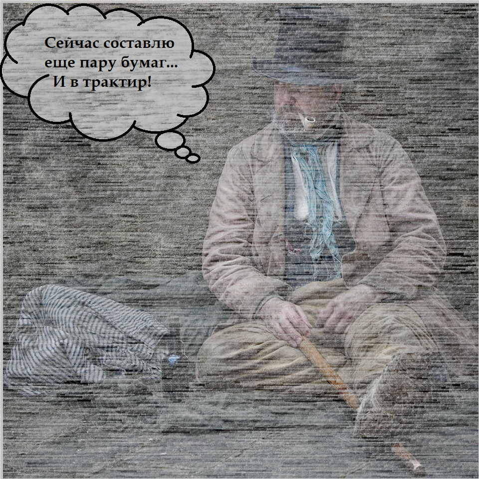 - Здешние чиновники, как прознают, что я тебе прошение составил, так и начнут дело твое мурыжить, растянут на два года. Не любят они нас, потому как мы бумагу так состряпаем, что им взятки с человека уже тянуть не за что. Пойдем, брат ты мой, тут за углом есть одно заведеньице, где, подкрепив силы наши, мы тебе бумагу и организуем.