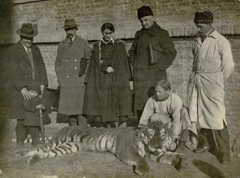 Вы, вероятно, не знаете, что на территории Южного Кавказа когда-то обитали тигры. Последнее достоверное упоминание о тигре в Грузии датируется 4 декабря 1921 года, когда хищник был убит в 20 километрах от современного Тбилиси. Предполагается, что тигр мигрировал из Азербайджана, пройдя через Гардабанский лес, Манглиси, район Мтквари и ущелья рек Храми или Алгети. В конечном итоге он оказался недалеко от села Лелоби, где нападал на скот крестьян. Охотники братья Циклаури обнаружили его логово и убили хищника. В прошлом на Южном Кавказе и в Центральной Азии обитал подвид тигра, известный как *Pantera Tigris Virgata* или «каспийский тигр». В настоящее время этот подвид считается вымершим. Он отличался внушительными размерами, ярко-рыжим окрасом шерсти, длинными полосами и пышными «бакенбардами», которые отрастали зимой. На архивном снимке 1921 года директор Музея Грузии Ноэ Кипиани демонстрирует немецким таксидермистам убитого тигра. Из последнего грузинского тигра было сделано чучел