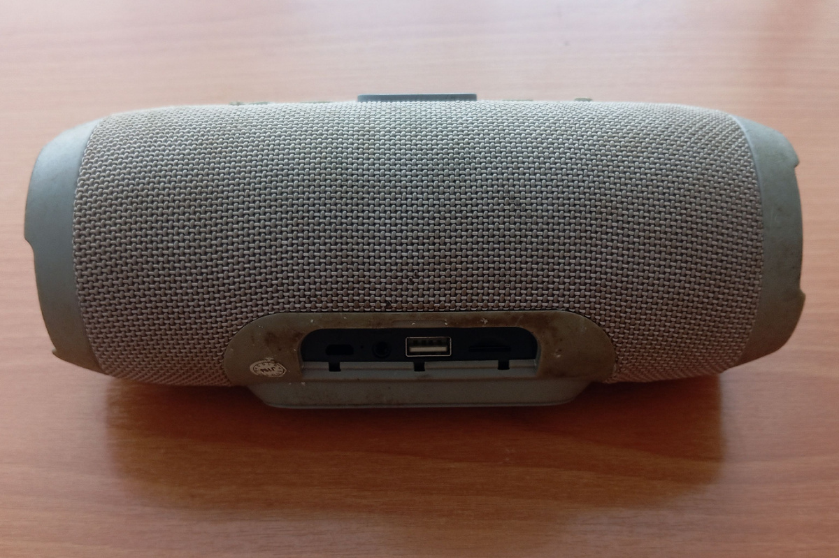 Всем салют! Как обычно, выломали разъём зарядки в переносной колонке JBL, которая, видала всякое)). За оригинальность не буду спорить, в данном случае это не важно. Разбирается как обычно - как кора дерева)). Находим шов и раздвигаем)). Снимаем оболочку. Потом выкручиваем все винты. И получаем это. Видно, где был оригинальный разъём. Примеряем китайский разъём Type-c. Применяя дрель, наждачку, и "какую-то матери", приделываем разъём на место, где его никто не предполагал. Для этого пришлось даже выпаять сам разъём от платы. Для примерки размера, а потом снова собрать. И пытаемся зарядить. Но, оказалось, что заряд не проходит - сильно разряженный аккум "не берёт заряд". Пришлось доказать, что аккум не прав)). Если не уверены - так не делайте! Аккум имеет право загореться или взорваться даже! Подключаем аккум к БП с ограничением напряжения и тока! Есть движуха. Ждём, пока напряжение увеличится - ближе к 4 В. После всё собираем и подключаем к штатному ЗУ. Светодиоды показывают -