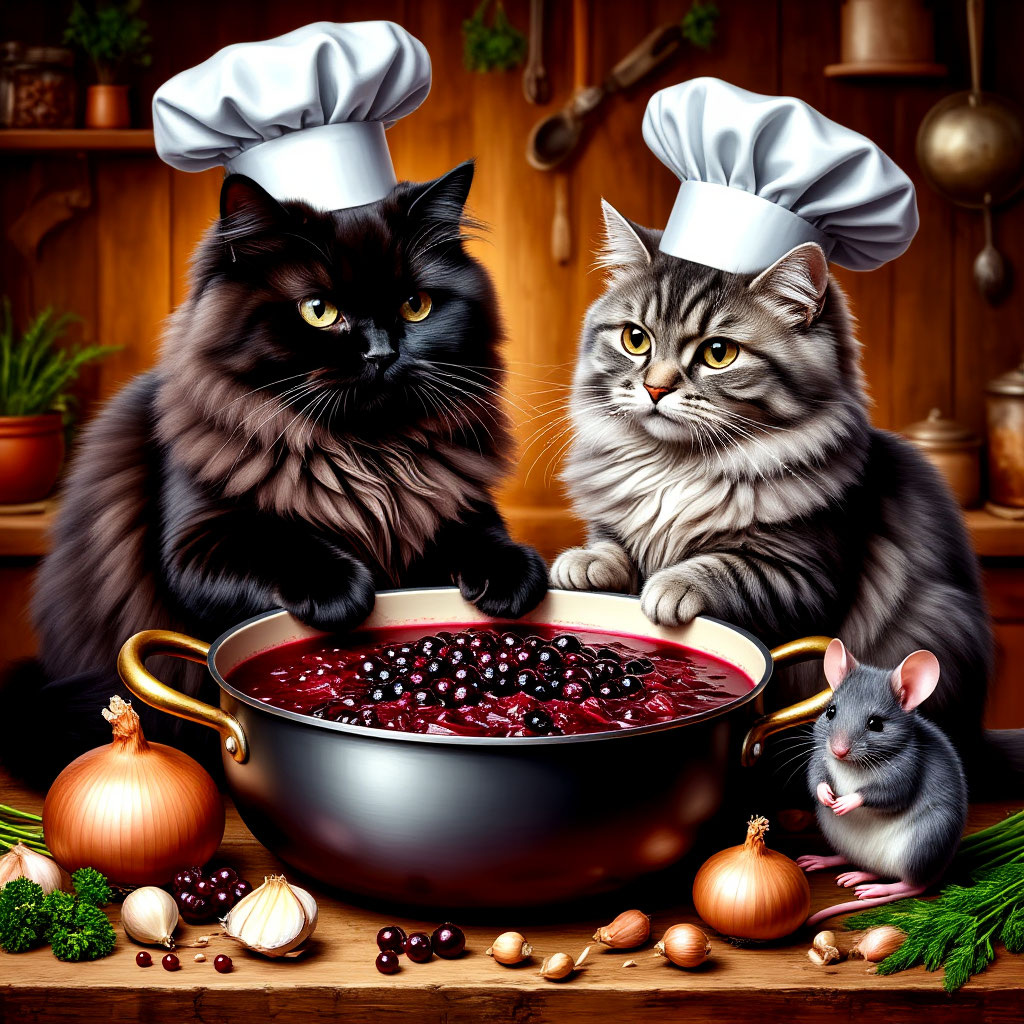 - Омно-мно,- возразила Баня, - борщовая красная, а мышовые серые, чем красить будем? Мяв!