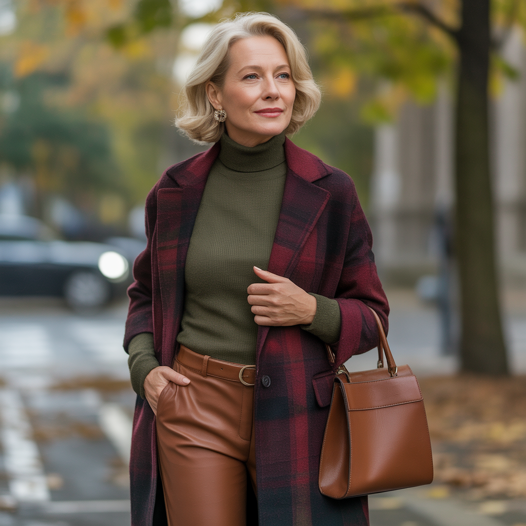 Ответ прост: осень 2025 — это сезон умного стиля. Когда мода работает на тебя, а не ты на моду. Мода 2025 года, как будто, решила порадовать женщин, у которых есть вкус, опыт и желание выглядеть на уровне. Главный акцент — комфорт, который не жертвует элегантностью. 1. Глубокие природные оттенки Этой осенью дизайнеры будто вдохновлялись золотыми парками и прохладными туманами. В моде — кедровый, бордо, шоколадный, оливковый, тёплый беж, приглушённый синий. Совет: выбирай цвета, которые подчеркивают твой оттенок кожи. После 50 слишком кричащие неоновые тона часто «забирают» свежесть лица. Глубокие, насыщенные оттенки, наоборот, добавляют благородства. 2. «Объём с умом» Тренд на oversize не уходит, но он стал более структурным. Пальто с чёткими плечами, мягкие плащи-халаты, удлинённые кардиганы.