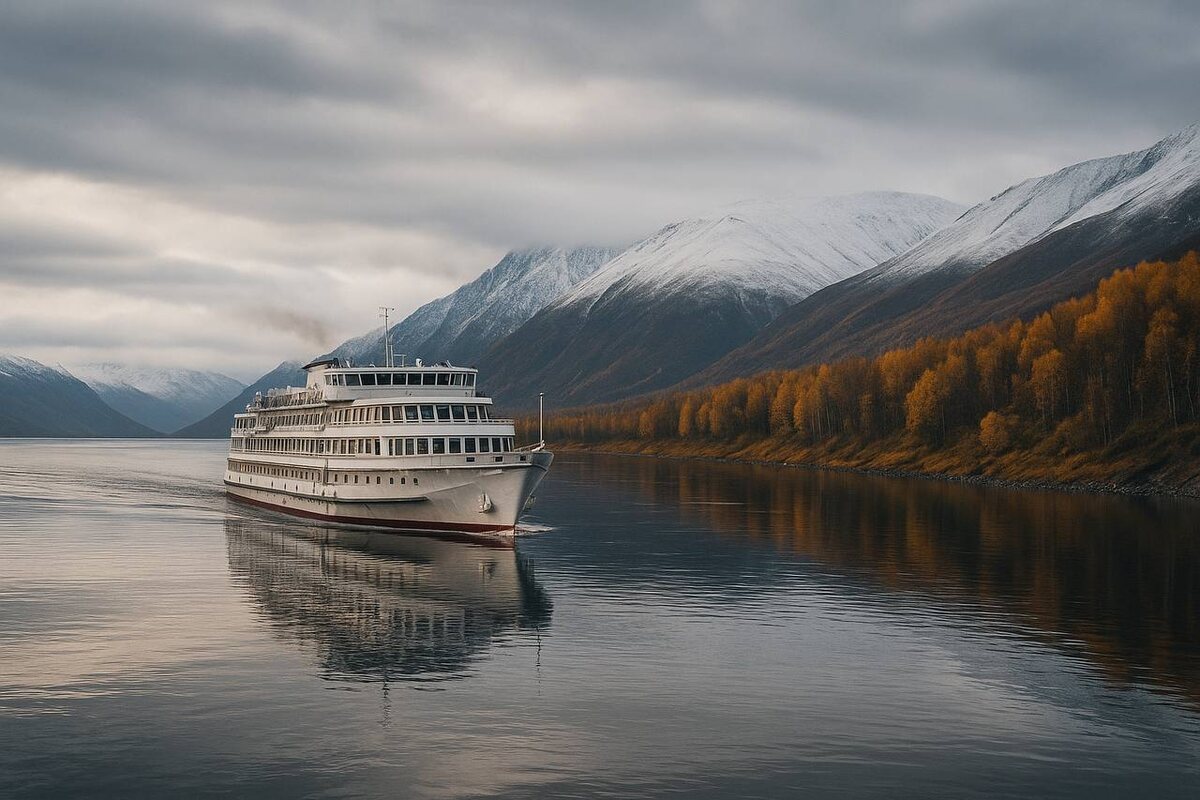 Енисей — это не просто река. Это дорога, которая меняет тебя так же, как меняются пейзажи за бортом теплохода. Едешь по нему и видишь, как привычная тайга постепенно редеет, уступая место тундре, а потом и суровой арктической линии горизонта. Такой маршрут невозможно сравнить с обычным круизом по туристическому направлению. Здесь нет толп на набережных, шумных курортов и спешки. Здесь ты становишься частью огромной водной артерии, по которой веками двигались купцы, географы, первопроходцы. Осень на Енисее особенная. Деревья окрашиваются в густые медовые и багряные оттенки, вода кажется особенно плотной и глубокой, а воздух чист и прозрачен. Солнце мягче, чем летом, а туристов меньше, что позволяет по-настоящему прочувствовать атмосферу северного пути. Путешествие осенью — это возможность увидеть Енисей в самом спокойном и красивом состоянии. Температура комфортная для прогулок по палубе, в среднем от +5 до +15 градусов, а в Дудинке уже можно ощутить первые прикосновения зимы. Свет в э