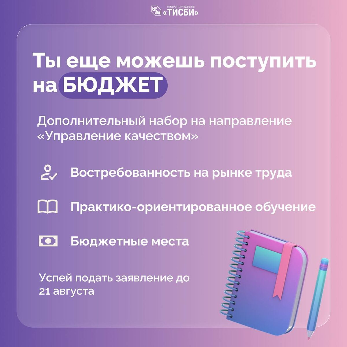 👨🎓 Последний шанс поступить на БЮДЖЕТ в «ТИСБИ
