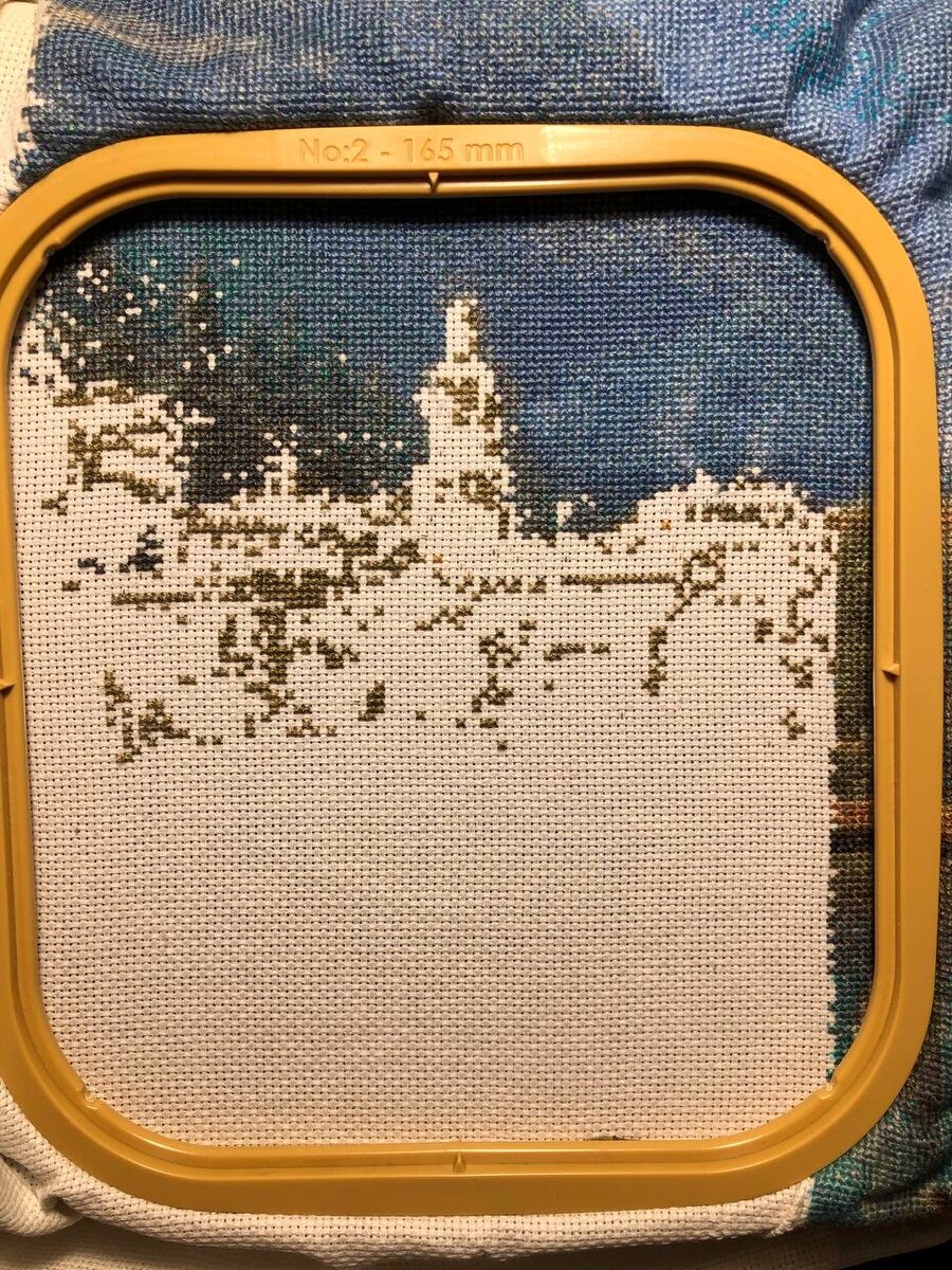 Один вышивальный вечер 100хх малочисленными символами Взяла в работу фрагмент в пяльцах целиком. Это нурге 2, помещается 10 тысяч крестиков. У меня невышито в этом фрагменте ~ 7 тысяч. И я пошла от меньшего к большему. День 1 прошёл, пока хочется эту работу убрать подальше)