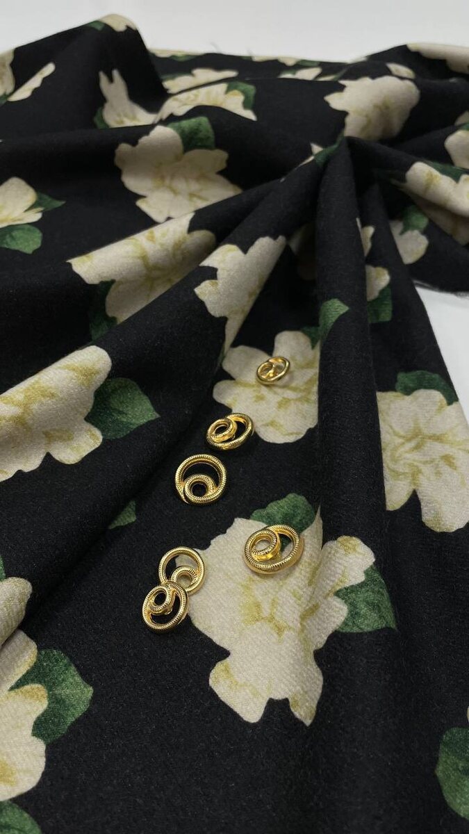 Плательно-костюмная фланель с нежными магнолиями на черном фоне в стиле Оскара Де Ла Рента
