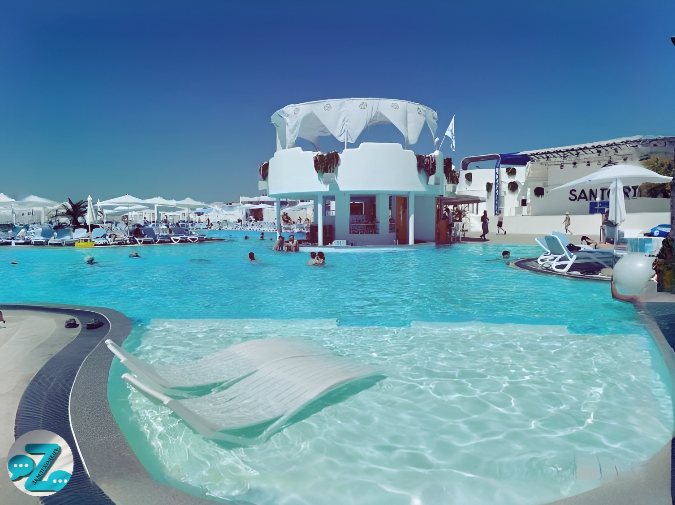 Летом это место превращается в настоящий оазис! Когда асфальт плавится от жары, а кондиционеры работают на пределе, Santorini предлагает спасительную прохладу голубой воды.