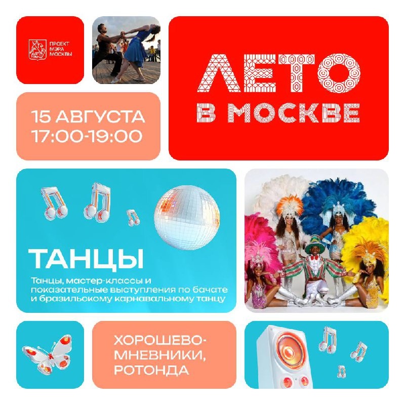 15 августа с 17:00 до 19:00 в ротонде района Хорошёво-Мнёвники (Москва) пройдёт яркое танцевальное событие в рамках Проекта Мэра Москвы!