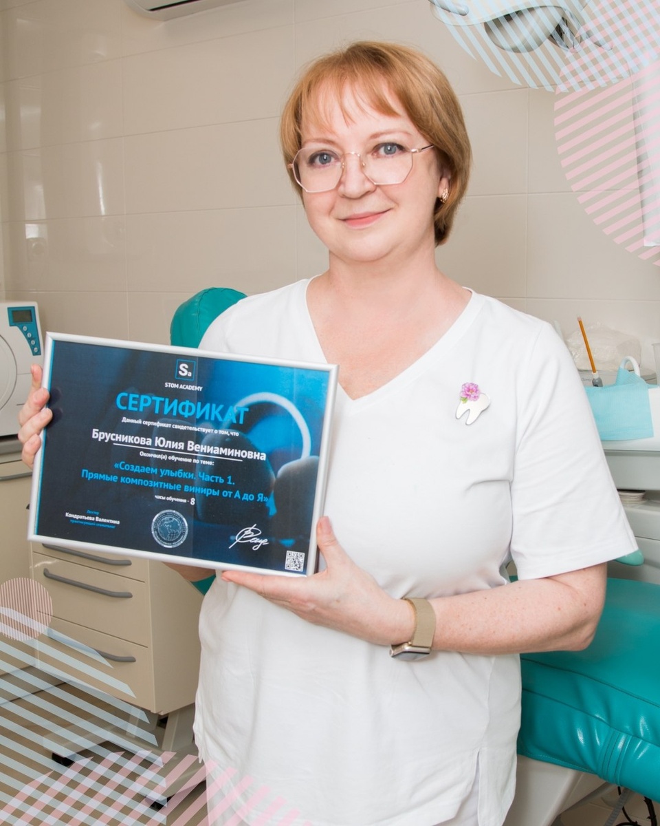 🎓 Наши специалисты постоянно проходят обучение и повышают свою квалификацию. На фото 📸 врач стоматолог-терапев, Юлия Вениаминовна Брусникова.