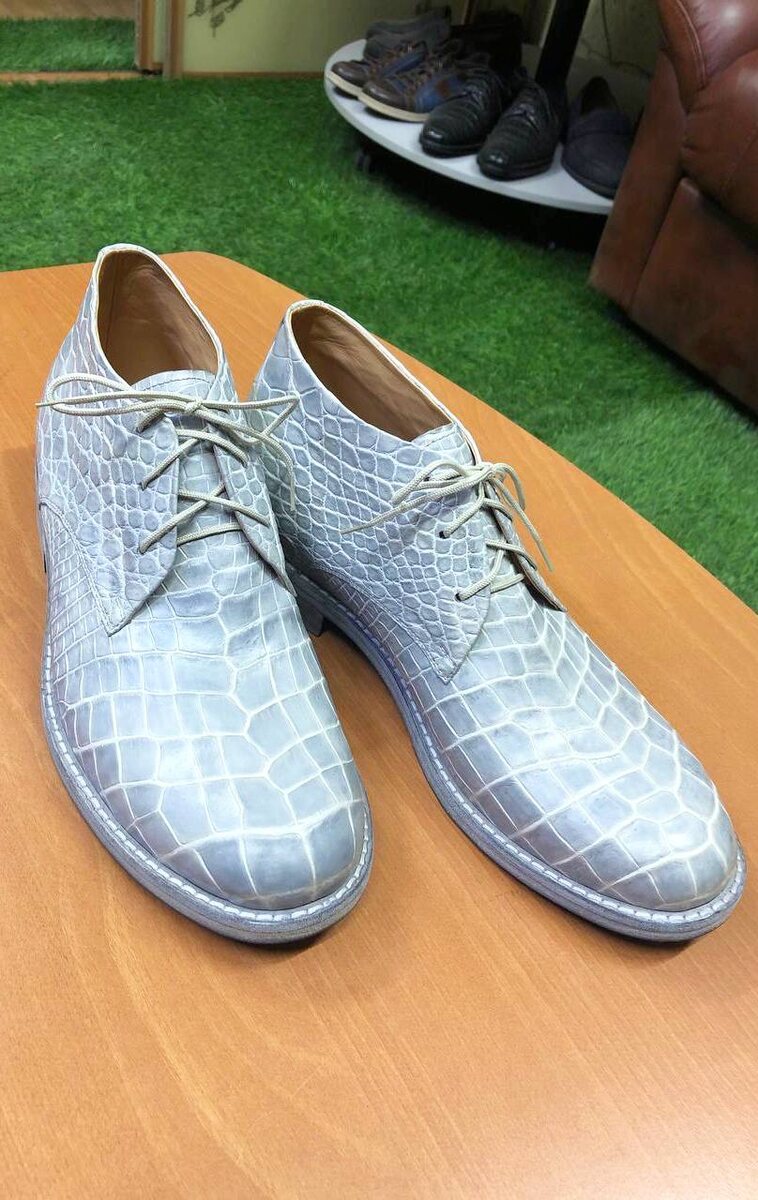 Демисезонные полуботинки из кожи нильского крокодила итальянской выделки(брюшная часть) от Inbespoke