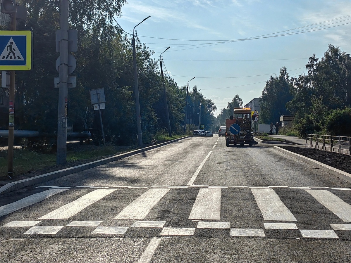 На обновленную проезжую часть ул. Короленко наносят разметку