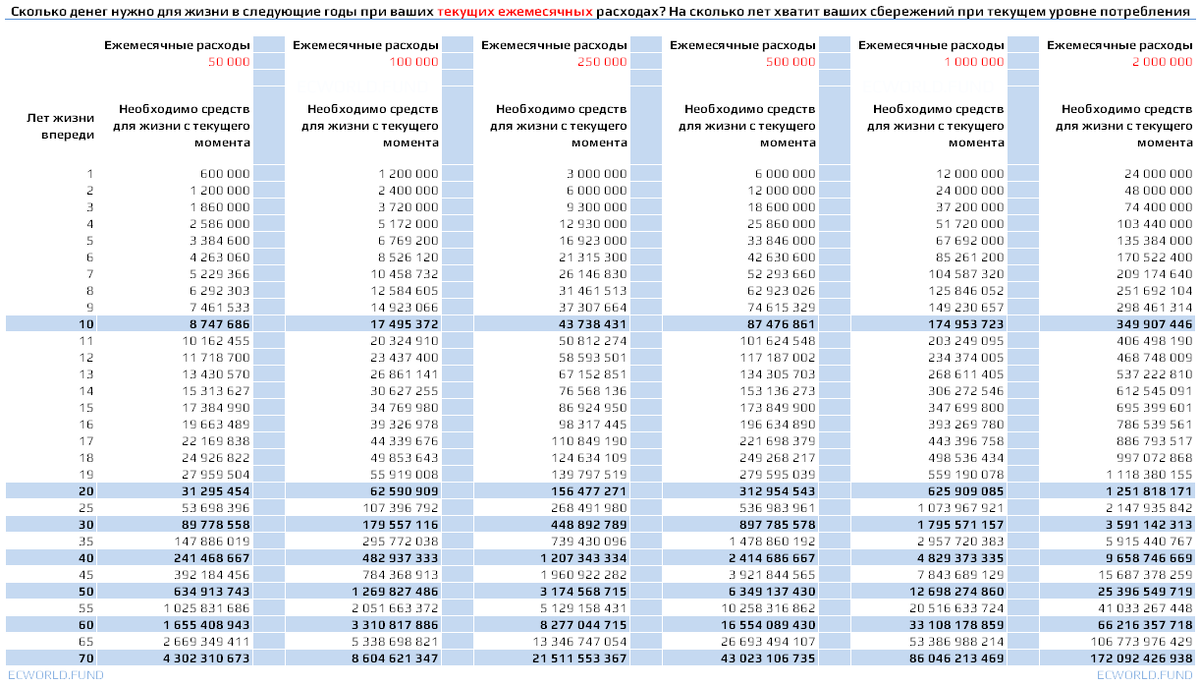 - Сколько денег нужно для жизни в следующие годы при ваших текущих ежемесячных расходах?