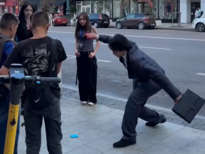По улице невозмутимо шел мужчина в строгом костюме и до боли похож на таинственного "вербовщика" из популярного корейского сериала «Игра в Кальмара». В руке он держал дипломат – неизменный атрибут персонажа, предлагающего отчаявшимся людям сыграть в смертельные игры за огромные деньги. Однако вместо потенциальных жертв объектом его внимания стал обычный воронежский мальчишка лет двенадцати. Играть они стали в "ттакчи" – детскую игру-головоломку, с которой для главных героев начинался кошмар. Серьезный "вербовщик" и увлеченный паренек сразились в "битве"..