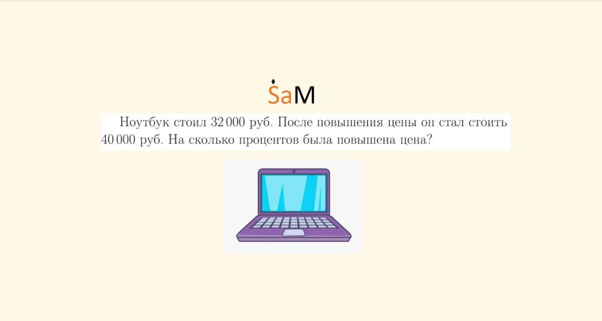 Лицей НИУ ВШЭ.9кл.Ачасть.Ноутбук стоил 32000 руб. После повышения цены он стал стоять 40000руб. На сколько процентов была повышена цена?