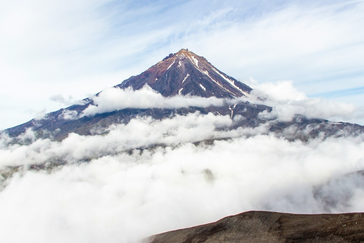 Авачинский вулкан действующий, над ним постоянно курится дымок. Последний раз он просыпался в 1991 году.