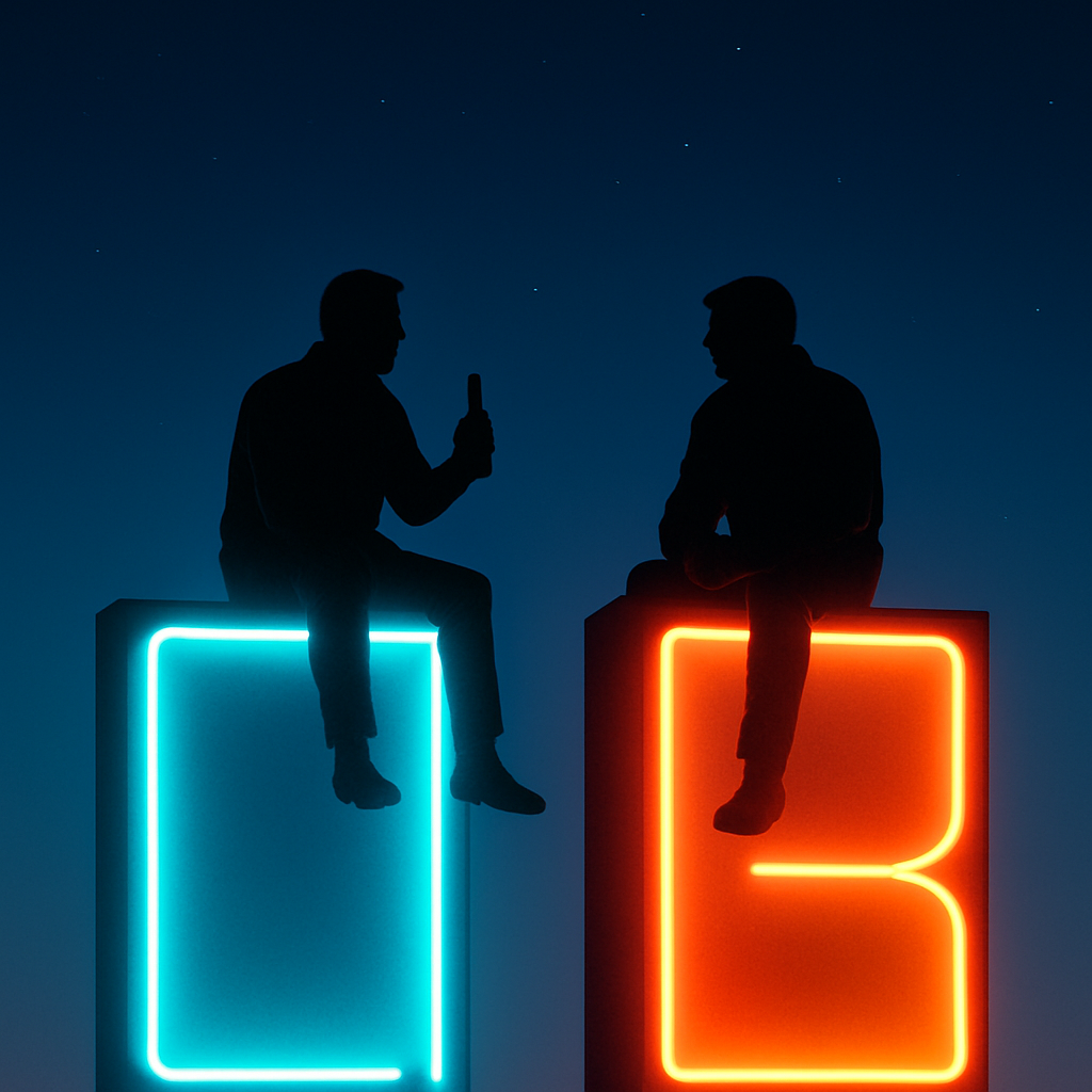 Так говорил Мужчина 1, сидя на светящейся букве Е. С бутылкой пива в руке, как и полагается в таких сценах.