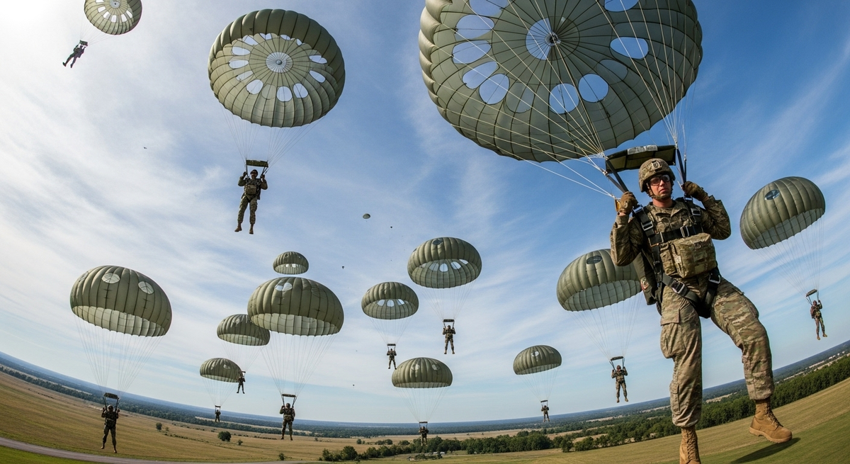 Воздушно-десантные войска используют парашюты для заброски как личного состава, так и снаряжения в районы боевых действий. Крупнейшей в истории стала операция «Маркет Гарден» времён Второй мировой войны, в ходе которой в Голландии высадилось около 35 тысяч десантников и солдат на планерах. При подобных массовых прыжках всегда применяются системы с принудительным раскрытием. Вытяжной фал парашюта каждого бойца крепится к тросу внутри самолёта, и купол раскрывается автоматически в момент прыжка.