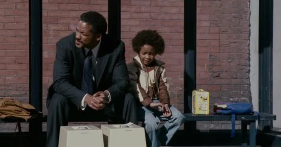А есть The Pursuit of Happyness. 2006 год. Уилл Смит, маленький Джейден, костюмы в полосочку и костыль в сюжете — бездомный парень с ребёнком пытается стать брокером. И вот прошло почти два десятка лет, а ты включаешь — и тебя всё так же сжимает в груди. Почему? Потому что это не кино про «тогда». Это кино про «всегда». В фильме 80-е. Инфляция, безработица, люди мечутся между «держаться за старое» и «ухватиться за новое».