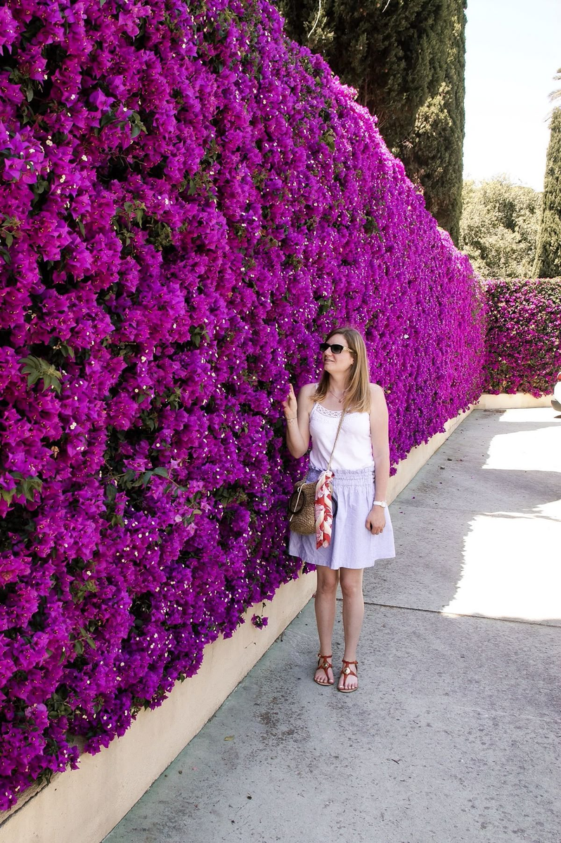Самое страстное и узнаваемое растение Средиземноморья. В Турции она буквально покрывает фасады домов — в Мармарисе, Каше, Бодруме. В Греции — повсюду: особенно на Санторини и Миконосе, где фуксия и пурпур эффектно контрастируют с белыми стенами.