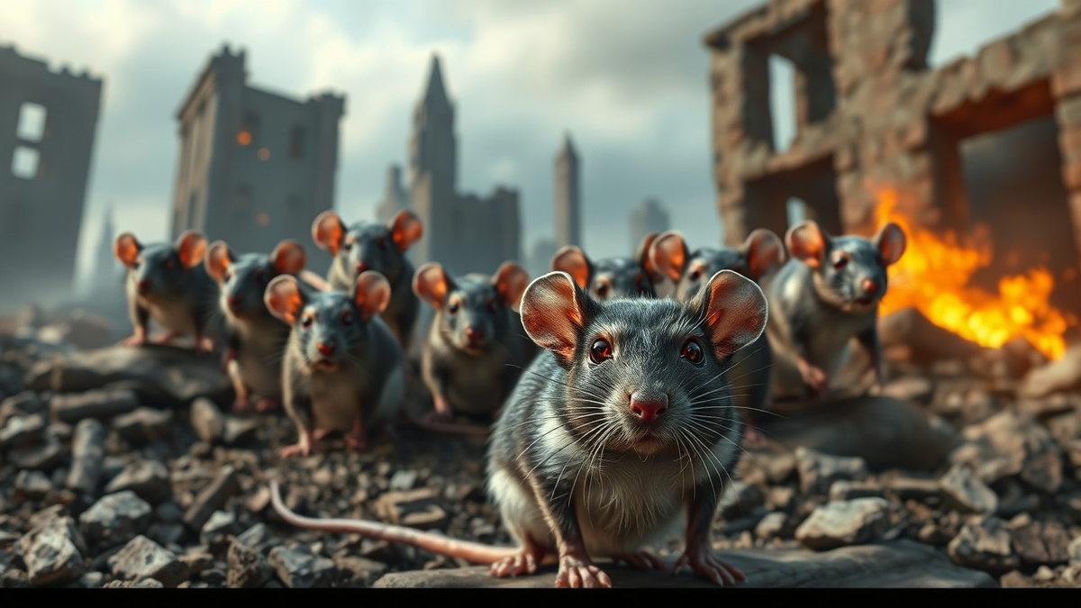 Когда ядерная бомба взорвалась, мир погрузился в хаос. Город превратился в руины, а небо затянуло густым черным дымом. Люди в панике пытались спастись, но большинство из них не успело. Однако в глубине канализации, среди обломков и грязи, выжила одна крыса. Эта крыса была не обычной. Радиация изменила её, сделав сильнее, умнее и агрессивнее. Она научилась выживать в этом новом, опасном мире. Её глаза, когда-то тусклые и маленькие, теперь светились зловещим красным светом, а зубы стали острыми, как бритва. Крыса быстро поняла, что в этом мире она не одинока. Другие мутанты, такие как она, начали появляться из глубин канализации. Они были голодны, злы и готовы убивать ради выживания. Крыса стала их лидером, используя свой интеллект и силу, чтобы подчинить себе остальных. Со временем крыса и её стая начали выходить на поверхность, чтобы охотиться на оставшихся людей. Они стали ночным кошмаром, который никто не мог остановить. Люди, которые когда-то считали себя хозяевами мира, теперь