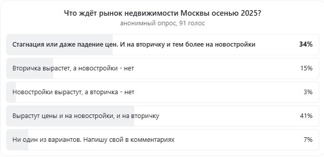 И, наконец, 34% уверены, что впереди - стагнация, а то и падение цен.