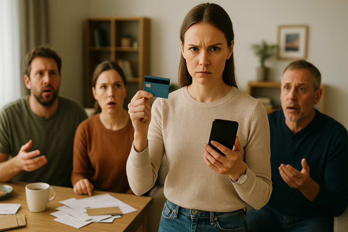 Лера стояла на кухне и слышала каждое слово. Никаких заказов торта из семейного бюджета не планировалось. Значит, покупка была сделана на ее карту без уведомления.