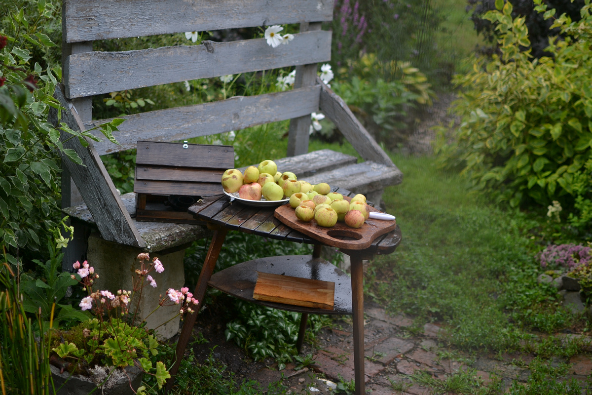 Пахнут эти гирлянды умопомрачительно, шарлоткой, осенью, печкой, домашним уютом. Бабушка моя как раз на печке яблоки и сушила. Резала их дольками, тонко, завяливала под крышей сарая, пока стояли солнечные дни, а потом складывала в белый "бумажный", как тогда говорили, мешок и досушивала на печке.