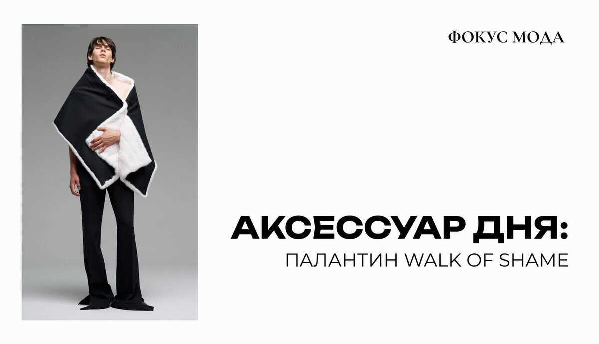 На первый взгляд, палантин Walk of Shame — это буквально минимализм в черно-белой гамме. С одной стороны мягкий мех, с другой — строгость с лацканом и карманом. Его можно накинуть на плечи, закутаться, как в одеяло, или носить как акцент в образах с вечерними брюками. Отличная игра с формой и функцией! #ФокусМода_ВещьДня