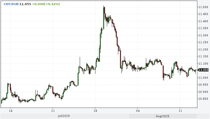 Июльское ослабление рубля является локальным событием и не предполагает разворота тренда. Курс доллара к рублю расчётный, фьючерс, вечный фьючерс и межбанк. Курс евро к рублю расчётный, фьючерс, вечный фьючерс и межбанк. Курс юаня к рублю биржевой, фьючерс, вечный фьючерс и межбанк. Юань на биржевых торгах во вторник, 12 августа подорожал к рублю на 0,2%, до 11,032. Курс рубля до конца августа продолжит колебаться в диапазоне 11,0–11,4 руб./юань и 80–83 руб./$1, полагают эксперты инвестиционного банка «Синара» Сергей Коныгин и Александр Афонин. «Рубль в июле периодически терял 2–3% относительно начала месяца, — пишут они в комментарии. — Полагаем, повышенная волатильность скорее связана с офшорными валютными сделками, чем с по-прежнему слабым внутренним спросом. В августе, по нашему мнению, курс российской валюты продолжит колебаться в диапазоне 11,0–11,4 руб./юань и 80–83 руб./$1. Мы не видим фундаментальных факторов, что способствовали бы существенной девальвации рубля прямо сейчас».